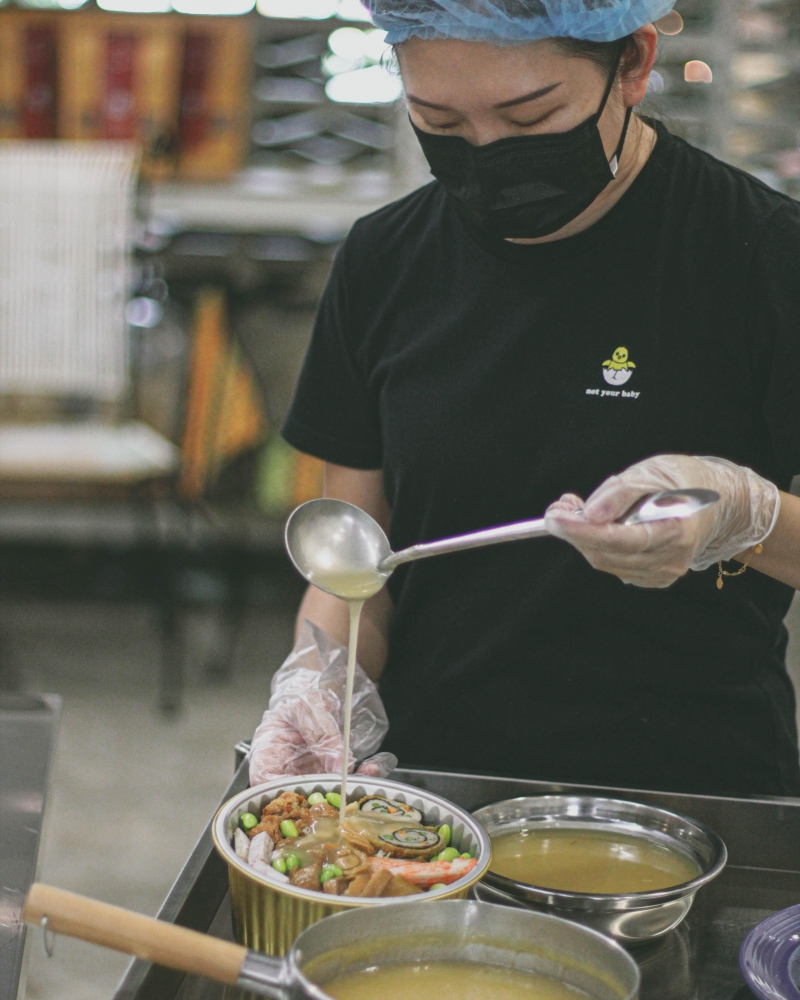 瑞熙的迷你版盆菜,可供2-3人享用。我们改用耐烧的铝箔餐盒, 想吃的时候可以直接以文火慢煮,像火锅围炉般越吃越好味。瑞熙想呈现新创清爽组合,无骨无肥材料,好让全家大小都喜欢。我们也会真空冷冻处理,选用可烧热铝制碗, 好让顾客方便享用,你知道啦,农历新年,多忙。