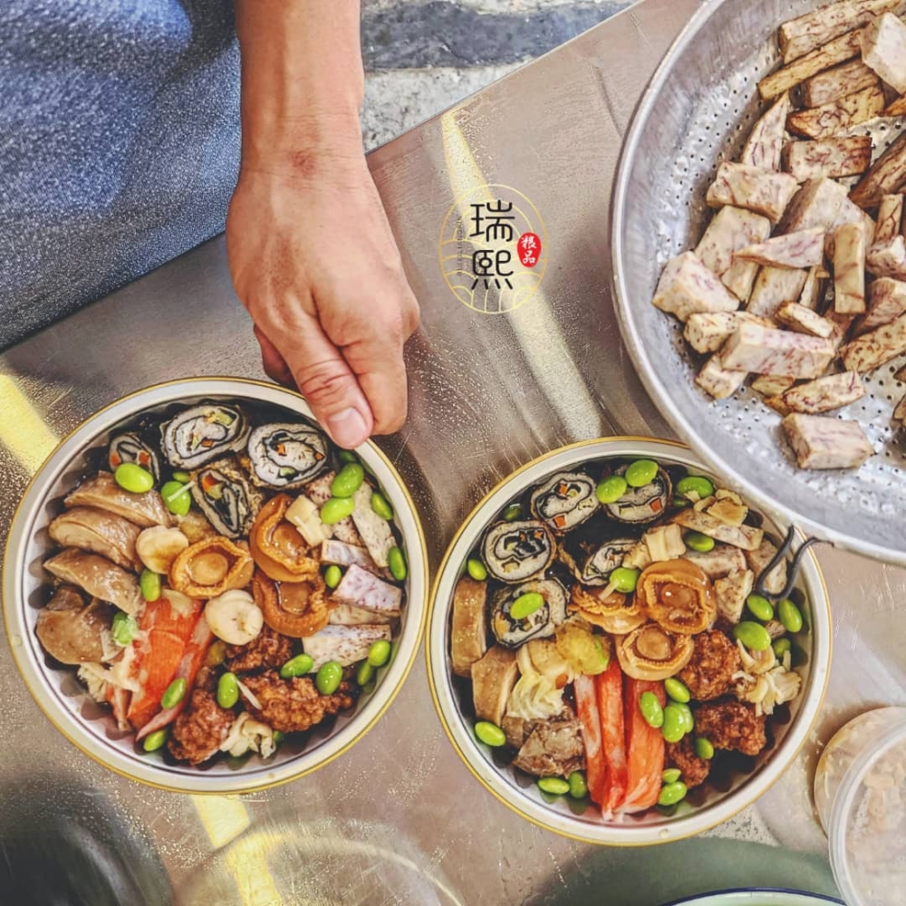 11 years ago, before the poon choy style was prevalent in Malaysia, "Ahtee Private Kitchen" actively learned to make poon choy at home. After that, poon choy atmosphere prevailed, and during the following Lunar New Year, every household began to use poon choy as the main New Year dish, which was convenient and fufilling. After starting our own brand "Ruixi LiangPin", we decided to launch a mini version of "Fu Qi Poon Choy", which uses only homemade dishes that children and adults love, such as scallion braised chicken rolls, Fujian fried meatballs, Ruyi spring rolls with fish paste, Gui Hua Fish Maw, Japanese edamame, red and white radish and cabbage marinated in soup, fried taro sticks, crab fillet and braised small abalone, which symbolize the vitality of the year.